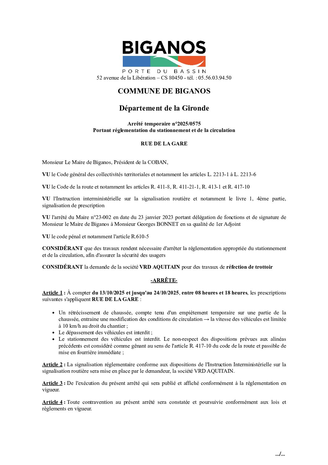 ARRETE 2025-0575 - RUE DE LA GARE
