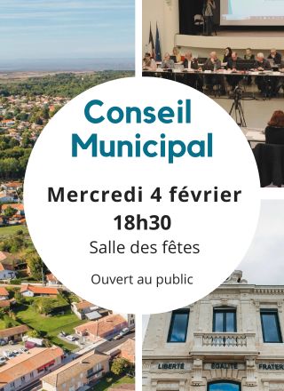Le prochain Conseil municipal se tiendra le mercredi 4 février 2026 à 18h30 à la Salle des fêtes. Cette séance est ouverte au public. L'ordre du jour est disponible au lien ci-dessous : ORDRE DU JOUR CM 04.02.2026