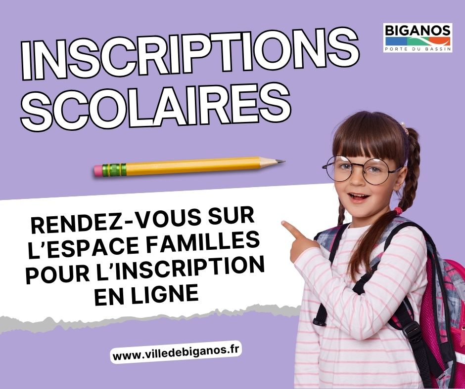 Toutes les démarches liées à la scolarité de votre enfant (inscription, restauration scolaire, centre de loisir, facture…) sont maintenant dématérialisées. Rendez-vous sur l’Espace Familles : https://www.espace-citoyens.net/villedebiganos