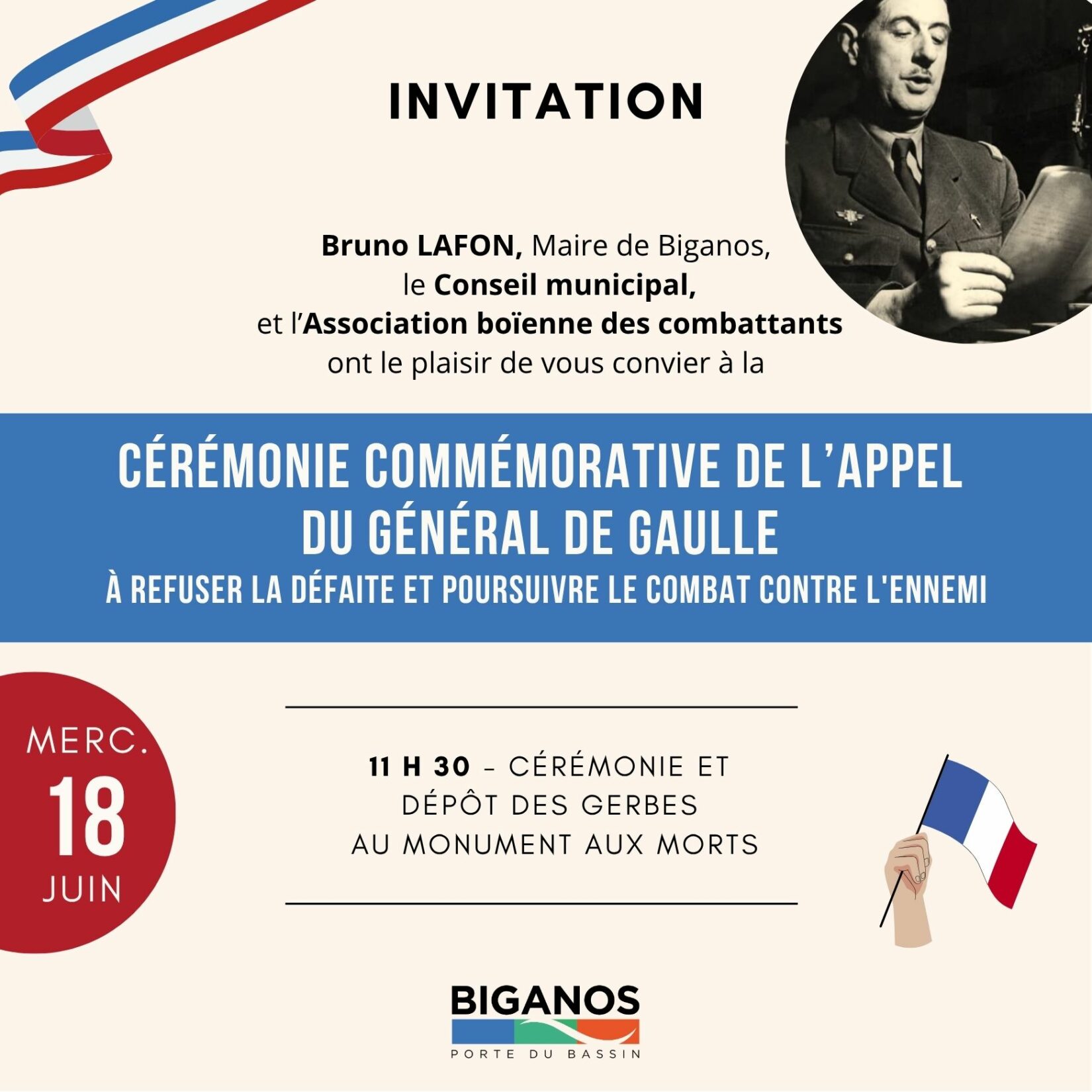 Mercredi 18 juin, à 11h30 au Monument aux morts
