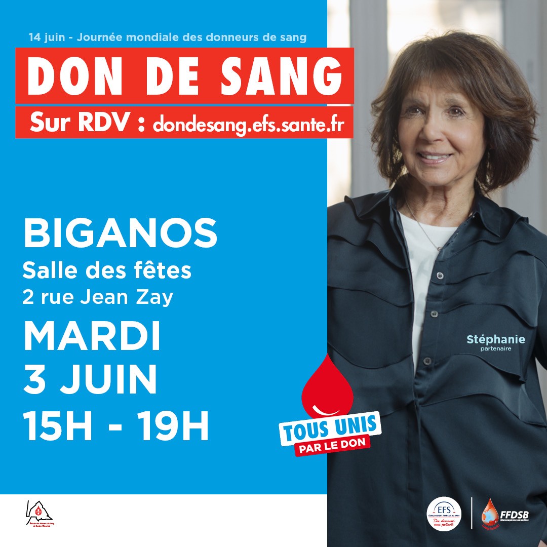 Le mardi 3 juin, de 15h à 19h, à la Salle des fêtes