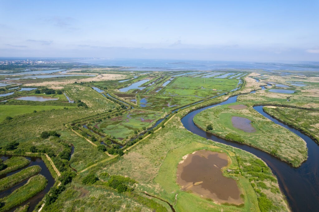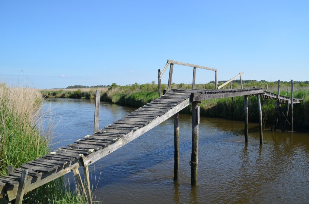 Sur cette île de 140 ha, 11 écluses régulent l’hydraulique des 19 bassins et « profonds » d’eau saumâtre du domaine. Ainsi les alevins de bars, muges et anguilles piégés au gré des marées grossissaient et étaient pêchés à l’âge adulte dans les « profonds ». Ceci au milieu d’un écosystème de 40 ha alimenté en eau douce par un puits artésien pour l’élevage de bovins sur les prairies et les « bosses » favorisant le développement de certaines espèces animales comme les amphibiens, les cistudes, visons d’Europe, anatidés etc…