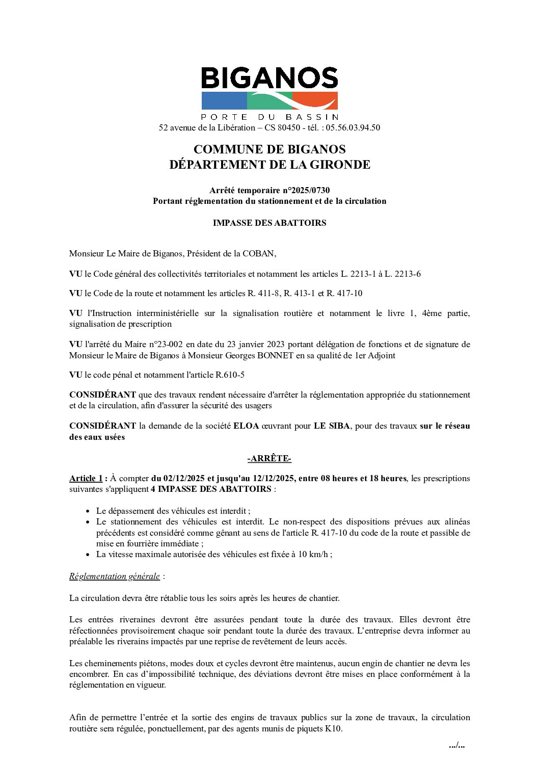 ARRETE 2025-0730 – IMPASSE DES ABATTOIRS