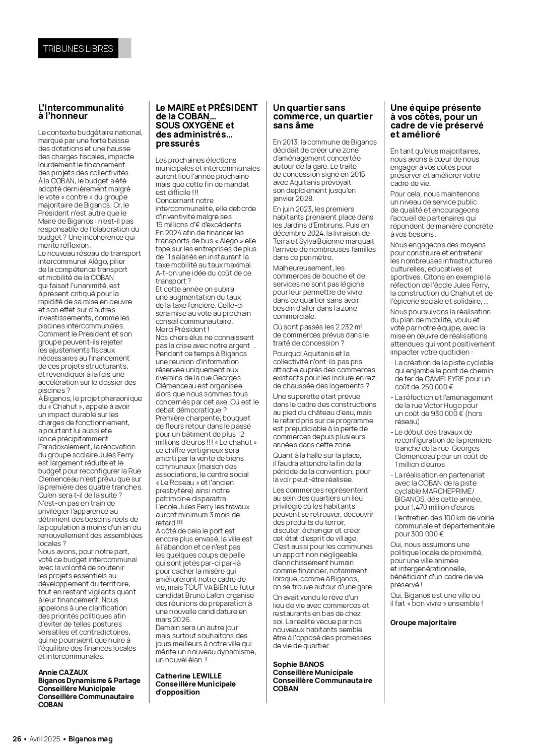 - TRIBUNES LIBRES DES GROUPES POLITIQUES – AVRIL 2025
