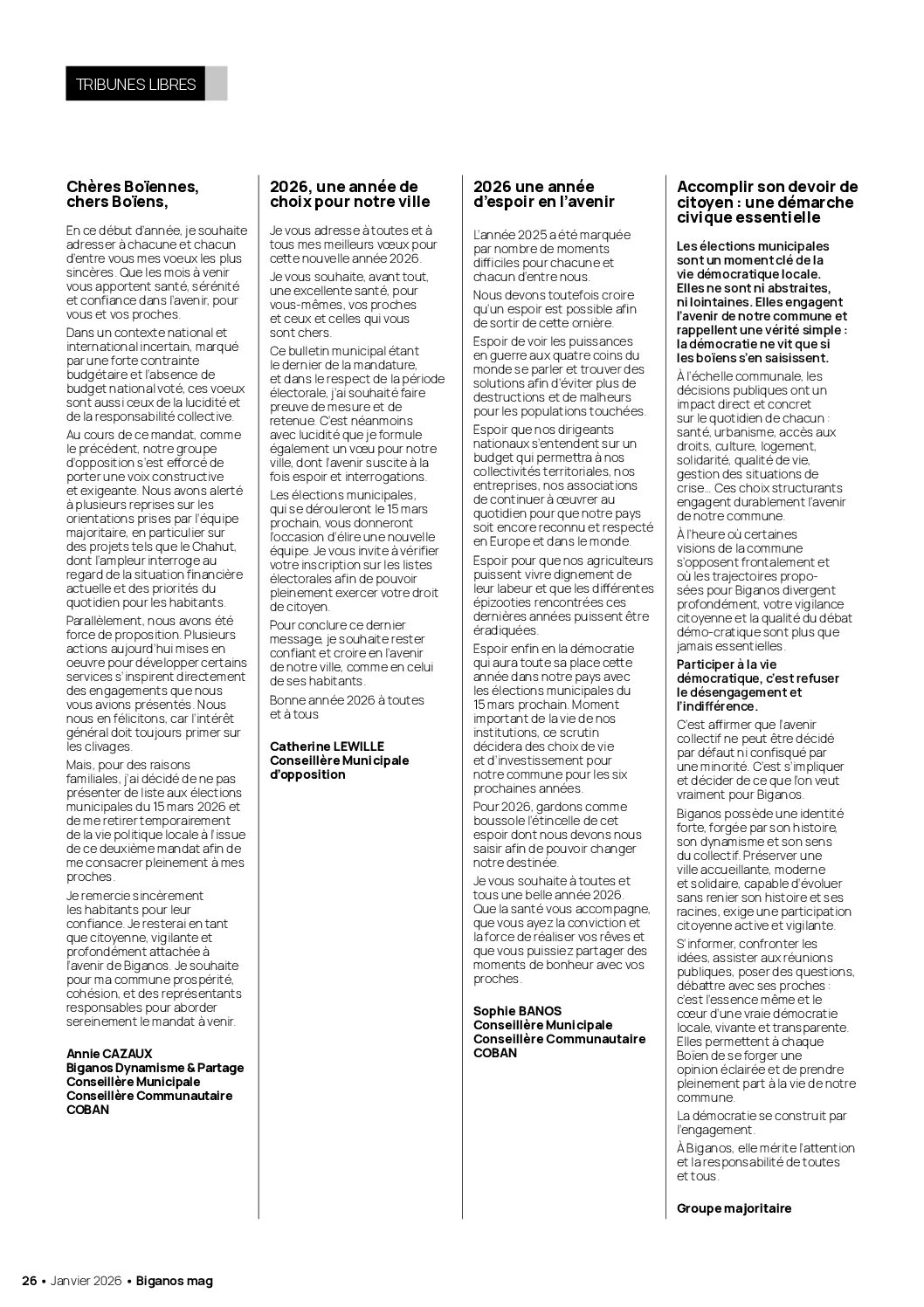 TRIBUNES LIBRES DES GROUPES POLITIQUES – JANVIER 2026