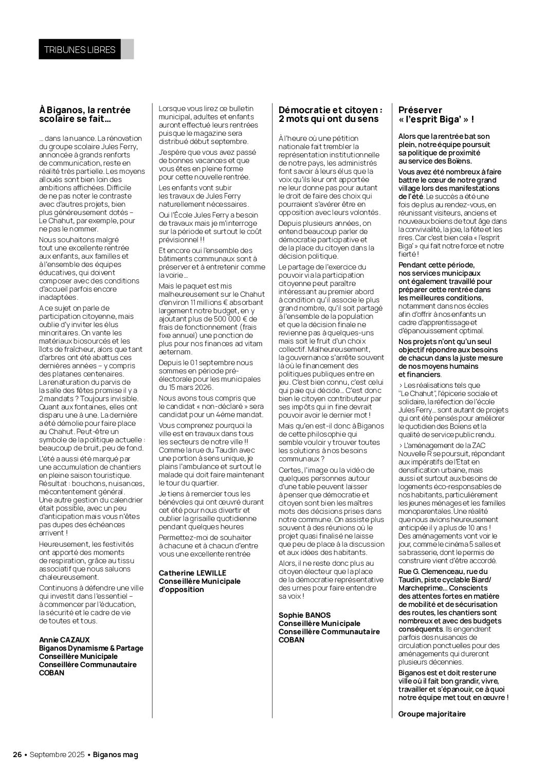 - TRIBUNES LIBRES DES GROUPES POLITIQUES – SEPT. 2025