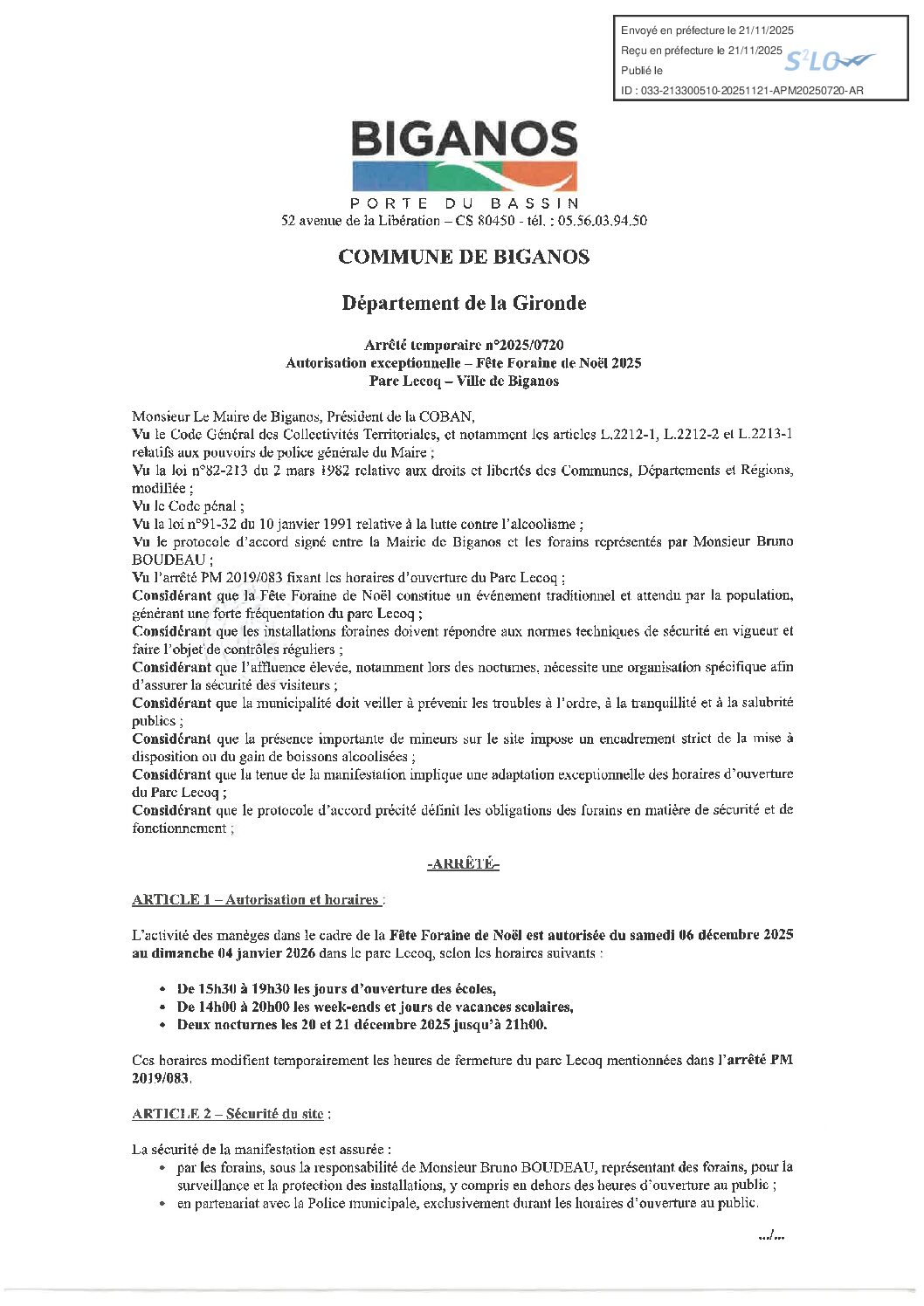 ARRETE 2025-0720 - AUTORISATION EXCEPTIONNELLE – FETE…