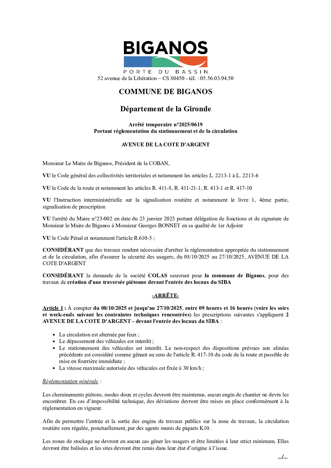 ARRETE 2025-0619- AVENUE DE LA COTE D'ARGENT