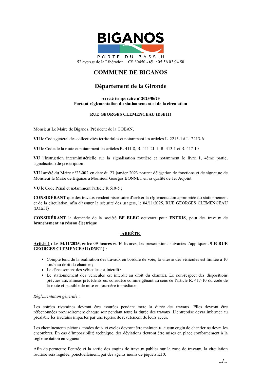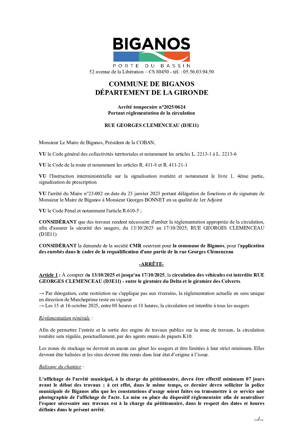 ARRETE DE CIRCULATION 2025-0624- RUE GEORGES CLEMENCEAU…