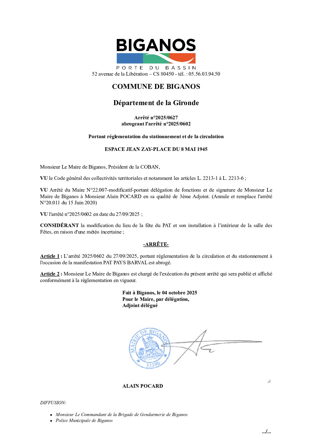 ARRETE N°2025-0627 ABROGEANT L'ARRETE N°2025-0602 PORTANT REGLEMENTATION…