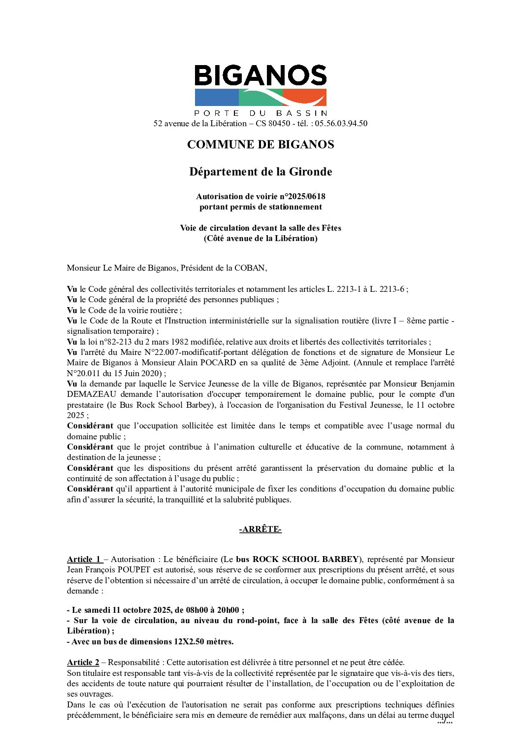 AUTORISATION DE VOIRIE N°2025-0618 PORTANT PERMIS DE…