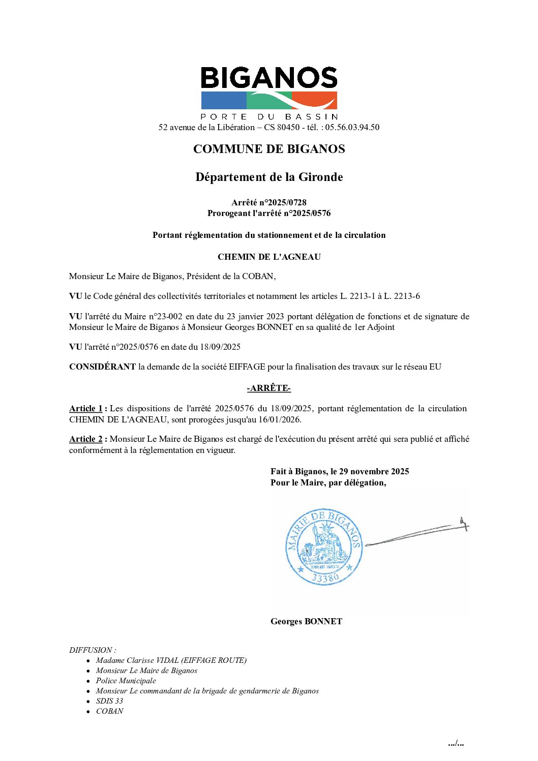 ARRETE 2025-0728 PROROGEANT L'ARRETE 2025-0576