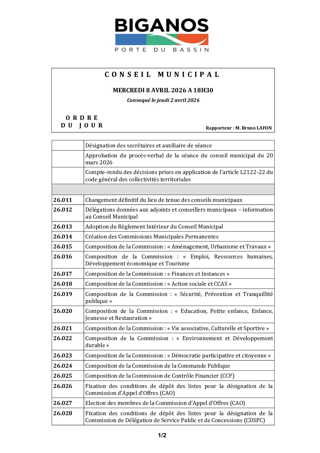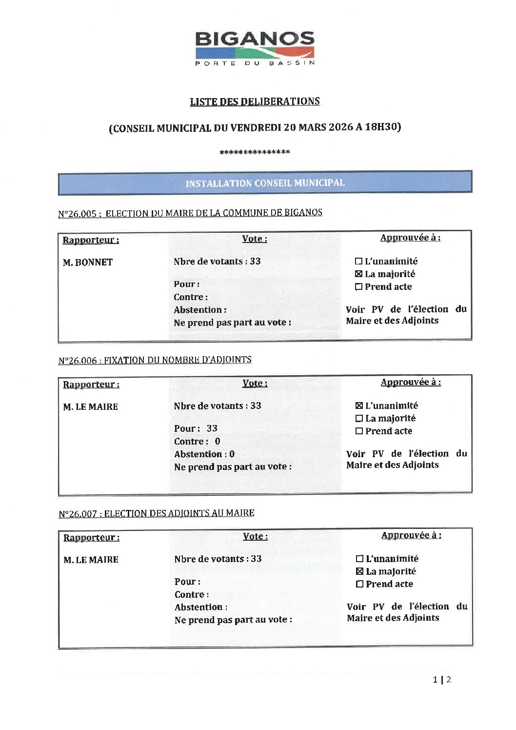 LISTE DES DELIBERATIONS CM DU 04.02.2026