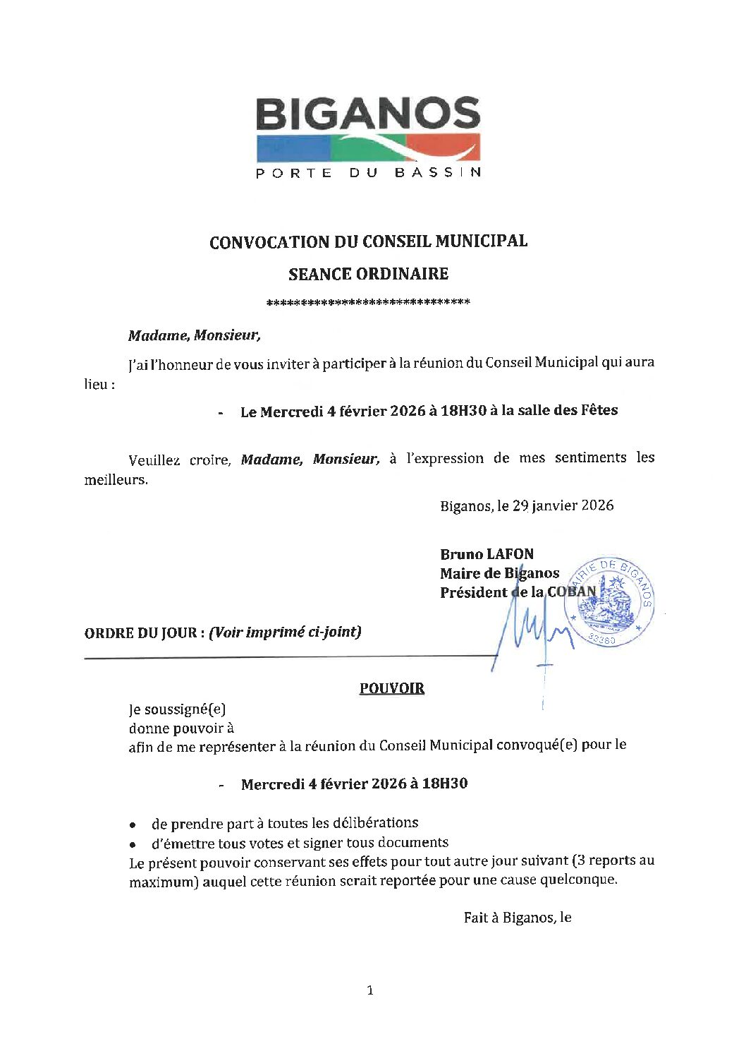 CONVOCATION CONSEIL MUNICIPAL DU 26-03-2024