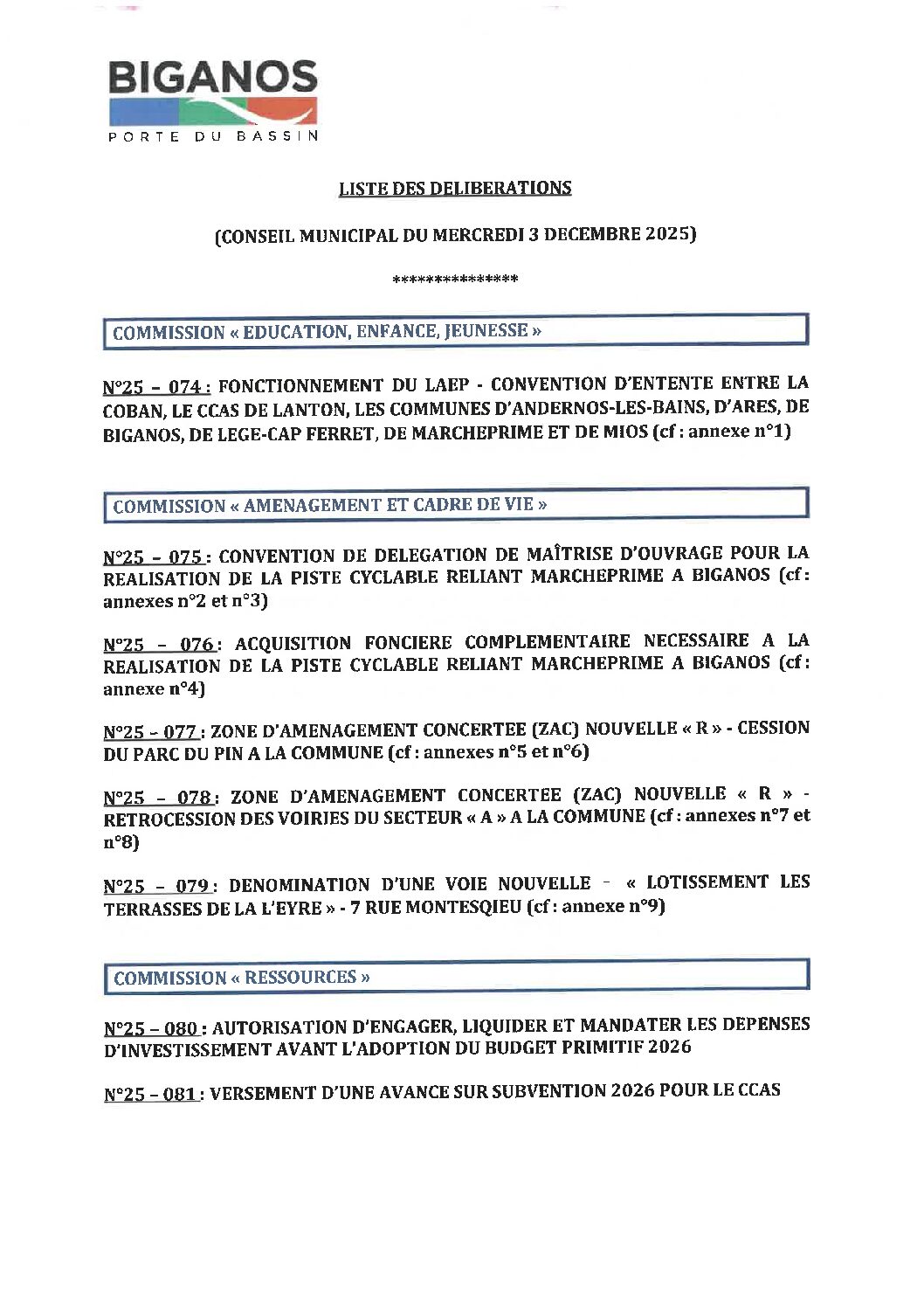 LISTE DES DELIBERATIONS CM DU 03.12.2025